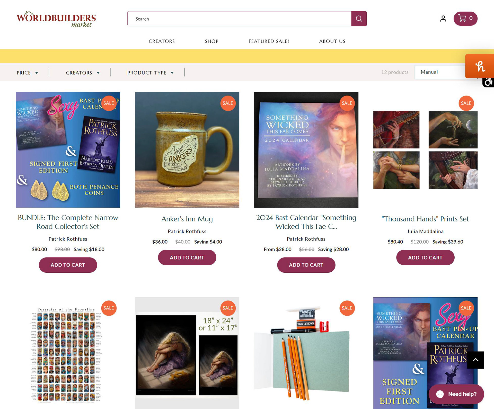 You can find a collection of products I've created in collaboration with Patrick Rothfuss and the Worldbuilders Market over here: Worldbuilders Market