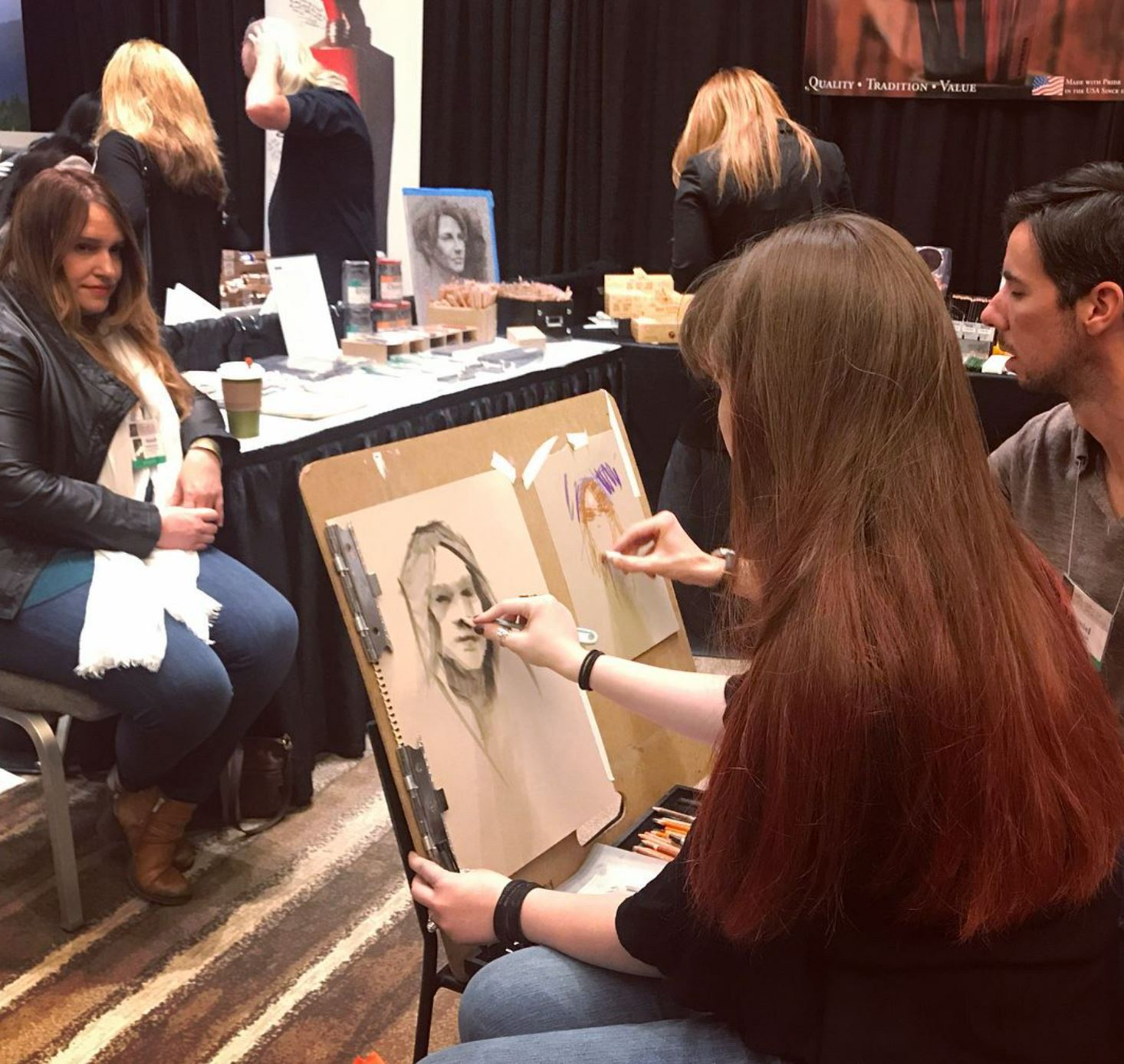 Charcoal portrait demonstration at the General Pencil Booth in Washington D.C. at the Art of the Portrait Conference. Artist Michelle Dunaway modeled for this session - 2018